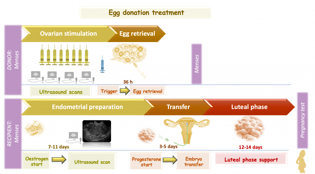 The oocyte reception treatment, also known as egg-donor ivf or egg donation is a treatment that involves the donation of eggs from one woman to another in order to achieve a pregnancy.